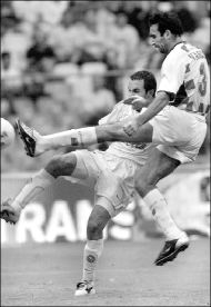 estaba adelantado y de cabeza le hizo un sombrerito para el 2-1 definitivo.
