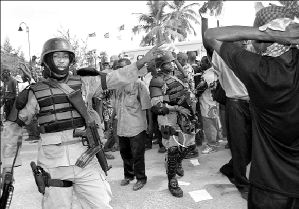 por simpatizantes de Aristide en el contexto de la segunda jornada de una