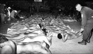 MOTIN EN EL PENAL DE GUASAVE  Luego de una hora de enfrentamientos con policías y celadores, internos del penal de Guasave fueron sometidos y formados desnudos en los patios del inmueble FOTO OSCAR VELIZ/ EL DEBATE DE SINALOA
