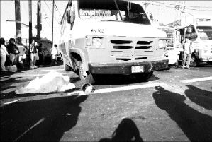 Una mujer de aproximadamente 70 años murió al ser atropellada por un microbús que participó en una carambola junto con un taxi y un tráiler, en la calzada Ermita Iztapalapa esquina con La Viga, colonia Prado Churubusco FOTO ROBERTO GARCIA ORTIZ