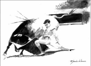 manchado de sangre bovina sin haberse arrimado jamás, y salió