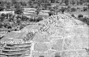 Cientos de personas visitaron ayer la zona arqueológica de Teotihuacán para dar la bienvenida a la primavera y "cargarse de energía" FOTO ALFREDO DOMINGUEZ