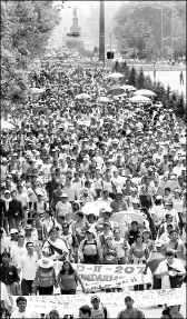 de la Educación marcharon por Paseo de la Reforma para conmemorar