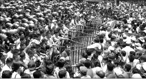 de seguridad los agredieron con piedras, tabiques, petardos, estopas con