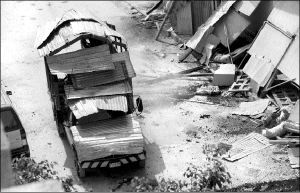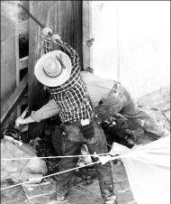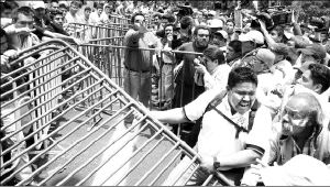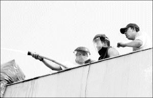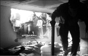 fuego, agua, sacos de cal, cemento y amoniaco. Los miembros de la coordinadora