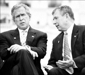 CEREMONIA EN WASHINGTON  El presidente George W. Bush escucha en el Capitolio al procurador general estadunidense, John Ashcroft, durante un homenaje a los policías caídos en el cumplimiento de su deber FOTO REUTERS
