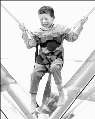 de lanzarse al vacío en uno de los juegos extremos de una feria