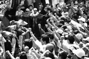 Integrantes de la Coordinadora Nacional de Trabajadores de la Educación se manifestaron frente a la Secretaría de Gobernación. La movilización derivó en un enfrentamiento con la Policía Federal Preventiva en la que un docente resultó con "fractura craneoencefálica y de costillas", según reporte médico. Los maestros advirtieron que "vendrán acontecimientos más fuertes" de no ser atendidos por las autoridades gubernamentales FOTO MARIA LUISA SEVERIANO