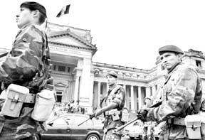 En Lima y otras ciudades los paristas desafiaron el estado de emergencia decretado por el presidente Alejandro Toledo. En los enfrentamientos hubo varios heridos y al menos 68 detenidos. El gobierno logró romper la huelga de agricultores y empleados del Seguro Social, mientras se mantenían en pie de lucha maestros y trabajadores del Poder Judicial. En la imagen, resguardo del Palacio de Justicia en la capital FOTO REUTERS