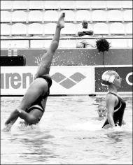 Actuación del equipo francés de nado sincronizado durante la copa europea que se realiza en Estambul FOTO AFP