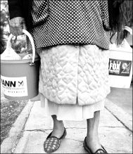 PROPAGANDA CADUCA  Una señora sale de la lechería ubicada en la