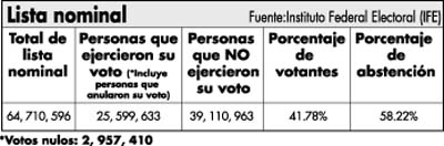 mayor abstencionismo en la historia reciente del Instituto Federal Electoral