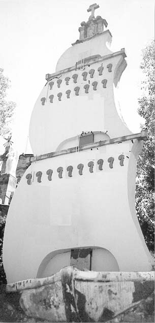 Se dice que la tripulación cumplió su promesa trayendo en hombros el mástil desde Veracruz, que fue colocado ''dentro de una construcción de piedra, para defenderla de las injurias del tiempo". Paradójicamente esta representación de las velas de un barco fue destruida por un fuerte viento que se presentó entre cuatro y cinco de la tarde del 24 de mayo de 1916.