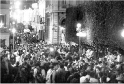 su rechazo hacia la muchedumbre juvenil que inunda callejones y plazas