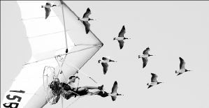 ESCUADRON DE GANSOS  El piloto francés Christian Moullec vuela con un grupo de gansos en la típica formación V, en un show aéreo en Dittinge, Suiza. El también ambientalista cría a esta especie de gansos -en peligro de extinción- en Suecia, y los ha entrenado para que crean que su aeroplano ultraligero es el líder del escuadrón FOTO REUTERS