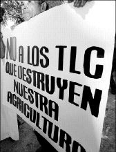 CONTRA EL TLC EU-CA  Productores agrícolas de países centroamericanos protestaron en San Salvador contra el TLC con Estados Unidos y demandan que se suspendan las negociaciones para que puedan participar FOTO AFP