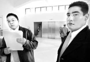 Dos integrantes de la Agencia Federal de Investigación, dependiente de la PGR, son atendidos en la recepción de este diario. Los agentes se negaron a presentar una identificación y solicitaron hablar con el reportero Gustavo Castillo para que "de manera económica", pues no traían citatorio, les dijera "quién le dio la información" sobre una operación antinarco en Sinaloa FOTO CARLOS RAMOS MAMAHUA