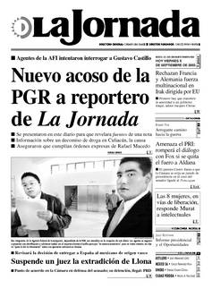Dos integrantes de la Agencia Federal de Investigación, dependiente de la PGR, son atendidos en la recepción de este diario. Los agentes se negaron a presentar una identificación y solicitaron hablar con el reportero Gustavo Castillo para que "de manera económica", pues no traían citatorio, les dijera "quién le dio la información" sobre una operación antinarco en Sinaloa FOTO CARLOS RAMOS MAMAHUA
