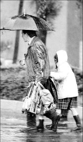 TARDE LLUVIOSA  Ayer, a la salida de la escuela FOTO MARIA LUISA SEVERIANO
