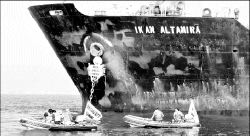 la capitanía de puerto local, los activistas de Greenpeace levantaron