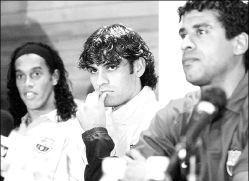 Márquez, Ronaldinho, el técnico Frank Rijkaard y los patrocinadores