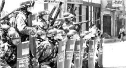en trajes camuflados, los soldados no sólo se apostaron en los principales