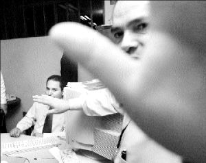 de la derecha, el agente Julio Moctezuma trata de tapar la cámara
