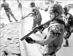 contra la entrada del edificio del Consejo Nacional Elctoral, en momentos