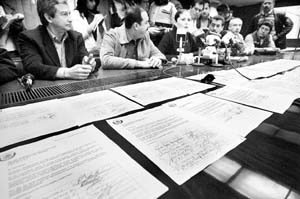 diputados muestran las firmas de quienes se rebelaron FOTO JOSE