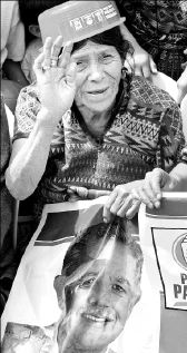 CAMPAÑA EN GUATEMALA  Una indígena sostiene un cartel con la imagen de Oscar Berger, candidato presidencial de la Gran Alianza Nacional, durante el acto de cierre de campaña en Antigua, Guatemala. Las elecciones serán el próximo domingo FOTO AFP