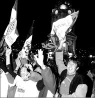 una multitud se concentrara para manifestar su euforia, con porras, cánticos