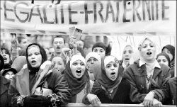 con leyendas como: "Chirac, nuestro velo no es agresión a la República",