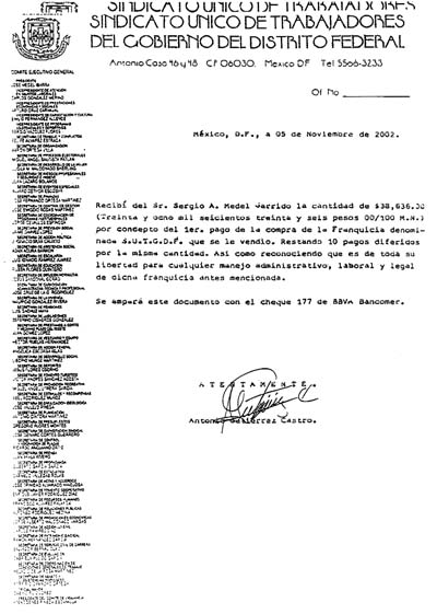 del sindicato de trabajadores del GDF que demostrarían la compra
