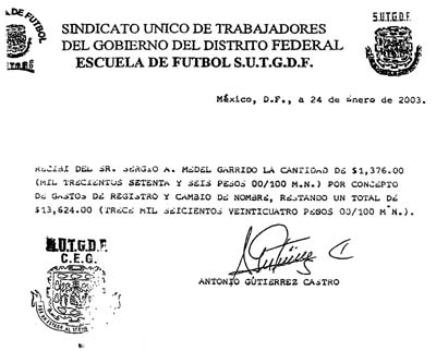ilegalmente las cuotas sindicales para comprar el equipo de futbol SUTGDF