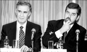 FOX "TENDRIA QUE RENUNCIAR" A LA PRESIDENCIA  Diego Valadés y el rector Juan Ramón de la Fuente, en la inauguración del Congreso Internacional de Culturas y Sistemas Jurídicos. En el acto, el director del IIJ afirmó que Fox tendría que renunciar a la Presidencia seis meses antes de los comicios, en caso de que su esposa busque la primera magistratura del país FOTO CARLOS RAMOS MAMAHUA