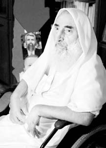 El jeque Ahmed Yassin, fundador y líder espiritual del movimiento de resistencia palestino Hamas, en su silla de ruedas durante una conferencia en Gaza en agosto de 2002 FOTO AFP