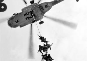 Fox celebró aquí con los altos mandos militares del país el Día de la Marina. Desde el buque Usumacinta, presenció elaborados ejercicios que desplegó la Armada para demostrar su capacidad de hacer frente al narcotráfico, recuperar instalaciones estratégicas, intervenir en una "edificación terrorista'', rescatar rehenes, ayudar en casos de desastre. Recibió todo género de explicaciones sobre los buques, aeronaves y armamento utilizado.