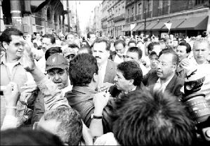el apoyo de un numeroso contingente integrado por vendedores ambulantes,