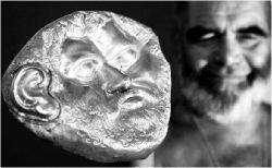 DESCUBREN EN BULGARIA UN REMERO "OLIMPICO"  El arqueólogo búlgaro Georgi Kitov muestra una antigua máscara de oro sólido. Reuters reportó que además de esa pieza el estudioso halló un anillo con la figura grabada de un remero "olímpico". "Es una señal de que los remeros búlgaros deberían ganar una medalla de oro", dijo el arqueólogo FOTO AFP