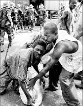 enterrando rápidamente a los muertos para evitar epidemias en Gonaives