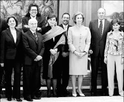 FESTEJAN AL QUIJOTE EN LA ZARZUELA  En el Palacio de la Zarzuela de Madrid, 18 ministros de Cultura de América Latina, entre ellos el cubano Abel Prieto y la mexicana Sari Bermúdez, participaron ayer, con el jefe de gobierno José Luis Rodríguez Zapatero y los reyes de España, en el primer acto de conmemoración por el cuarto centenario de la publicación de El Quijote FOTO AFP