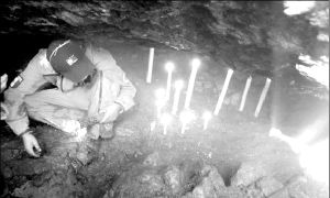 VELAS PARA DOS MENORES INDIGENAS  Personal de Protección Civil de Chiapas realiza excavaciones para rescatar los cuerpos de los hermanos Miguel y Pascual Saraos Jiménez, quienes hace ocho días se introdujeron en una cueva de Chilón, cuyos habitantes rezaron "para que la montaña los devuelva" FOTO VICTOR CAMACHO