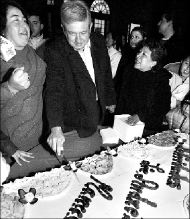con los colonos que le prepararon ese "sencillo pero bien merecido festejo".