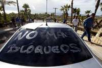 Un chofer de transporte tur�ico en Los Cabos fue agredido por taxistas que mantienen un bloqueo para presionar al ganador en los comicios de hoy a reordenar el transporte en esta zona FOTO Jes�llaseca