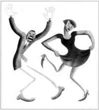 Doble charleston, del libro de Covarrubias Negro drawings, 1927. Imagen tomada de Miguel Covarrubias. Vida y mundos, obra escrita por Elena Poniatowska y publicada por Ediciones Era