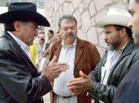 Tom�Medina Flores (derecha), dirigente de la asociaci�anadera local del municipio de Sombrerete, discute acaloradamente con Nemesio V�uez (izquierda), ex dirigente de la asociaci�anadera del municipio de Guadalupe, quien recibi�usaciones de corrupci�OTO Alfredo Valad�