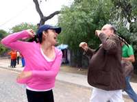 Pero 10 metros adelante eran esperados por un grupo de lugareños simpatizantes de la familia Fox, entre los que se encontraba Mercedes Angel Pacheco, ahijada del presidente Vicente Fox, quien se lanzó a golpes contra el diputado local Carlos Scheffler Ramos. Entre arengas y puñetazos, los legisladores pasaron el segundo obstáculo.