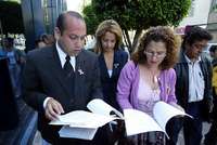 Lorena Villavicencio, Marcela Contreras, Araceli V�uez y Julio C�r Moreno, legisladores locales del PRD, acudieron a la Procuradur�General de la Rep�a a levantar una demanda contra el titular de la oficina, Rafael Macedo de la Concha, y el suprocurador Javier Vega Memije FOTO Alfredo Dom�uez