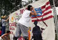 San José, 20 de septiembre. Sindicatos de empleados públicos y estudiantes marcharon este martes hasta la Casa Presidencial de Costa Rica para manifestar su rechazo al tratado de libre comercio (TLC) firmado con Estados Unidos.