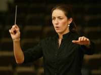 La directora Alondra de la Parra durante su ensayo con la Orquesta Sinf�a Nacional, en el teatro Regina, del Centro Hist�o FOTO Mar�Luisa Severiano